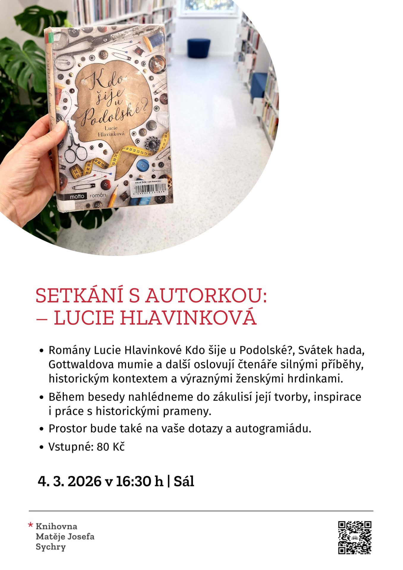 Více zde: https://www.klubpratelkkd.cz/news/literarni-caj-s-lucii-hlavinkovou/Beseda se čtvrťáky v ZŠ Pramínek