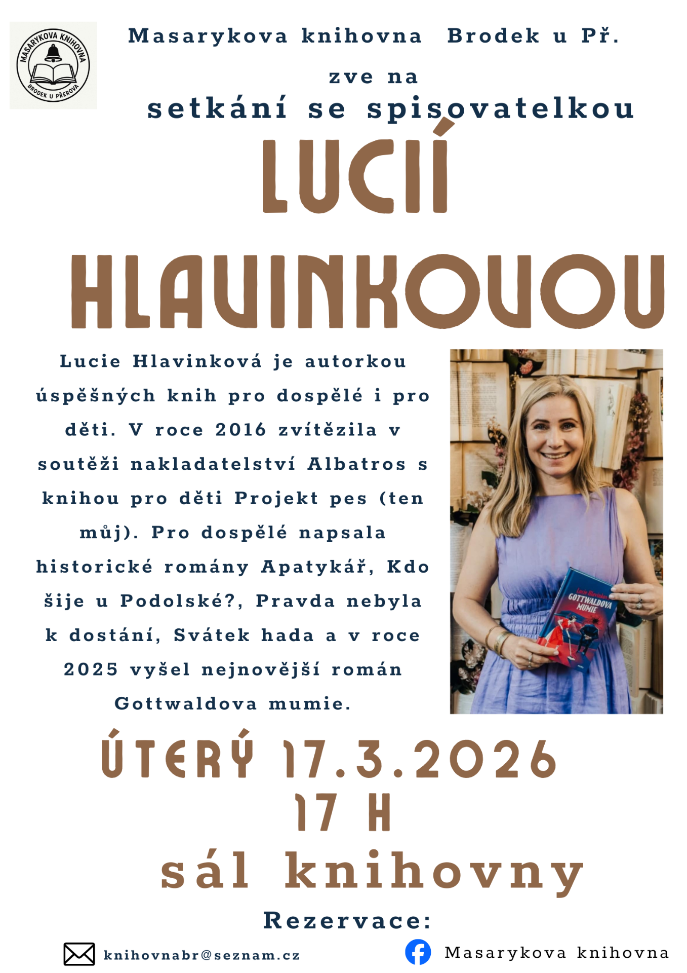Jste srdečně zváni na besedu do Masarykovy knihovny v Brodku u Přerova 17. března v 17 h.